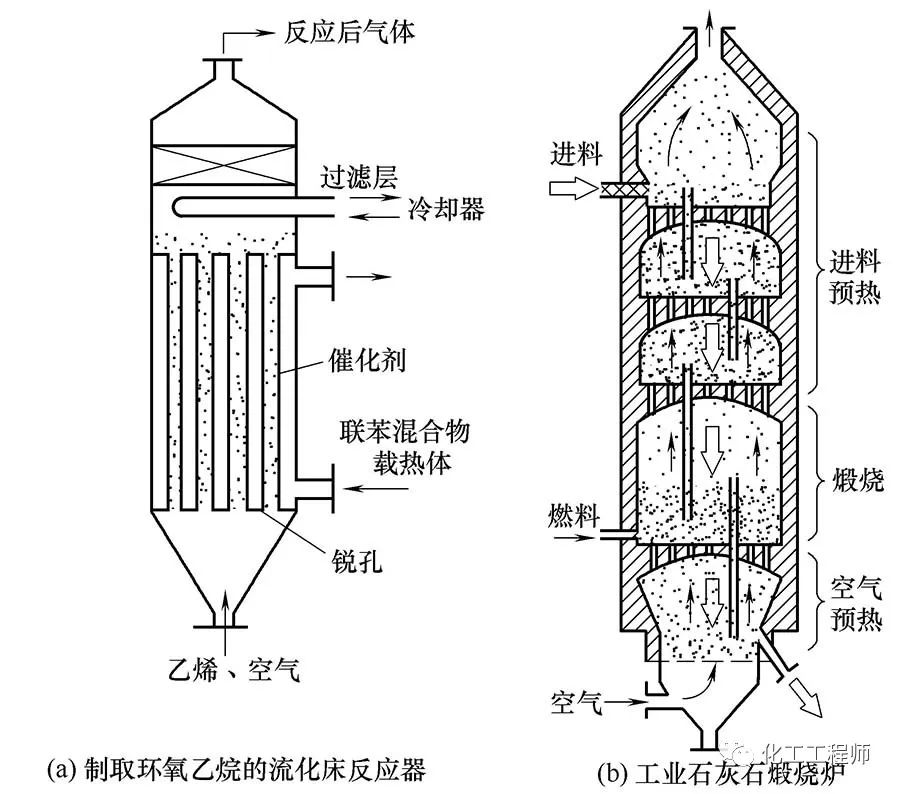 5、流化床反应器 流体自下而上通过固体颗粒床层,到流体速度增加到一定程度时,颗粒被流体托起作悬浮运动,这种现象叫固体流态化。利用流态化技术进行化学反应的装置叫流化床反应器。 ..