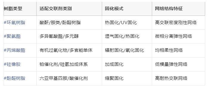 树脂-交联剂配伍矩阵