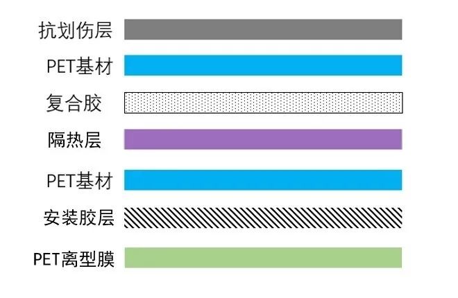 ③夹层染色膜:是将染料涂布在两层PET基材之间,手感软,有一定的耐紫外线老化性能,成本比较低廉。