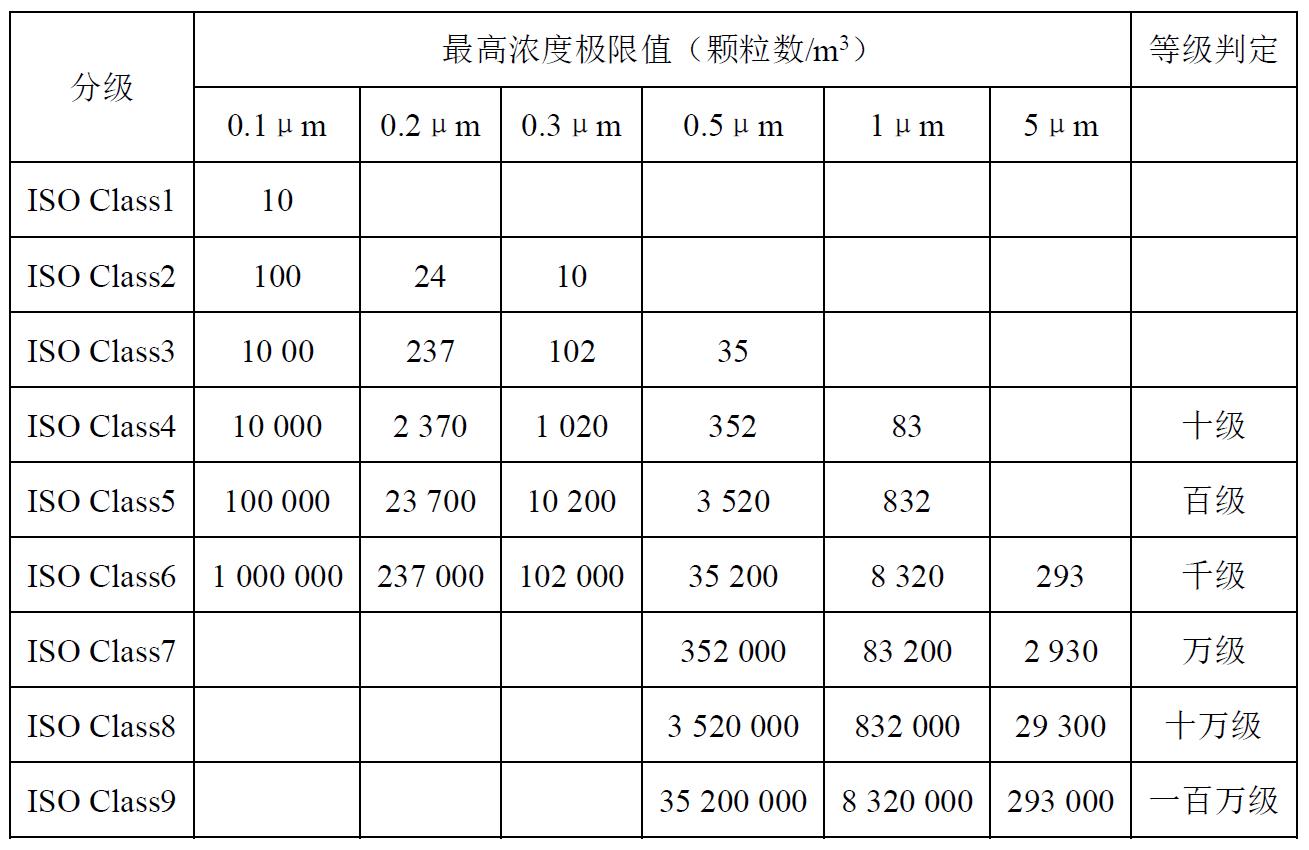 ISO 14644.1:2017规定的洁净度等级分级