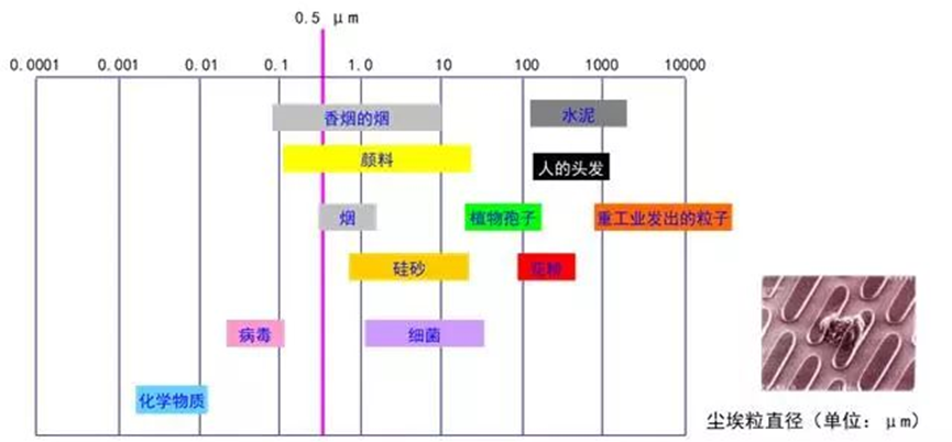 把微尘标准转化成易理解的洁净等级示例,如下图所示。