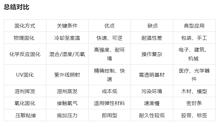 溶剂(如水、有机溶剂)蒸发后成膜。特点是固化时间受环境影响(温度、湿度)。应用案例有木工:白乳胶粘接木材。模型制作:氯丁橡胶胶粘剂(如万能胶)
